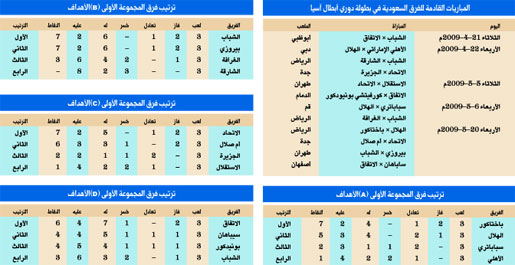 مجموعة(D): الاتفاق السعودي، الشباب الإماراتي، سيباهان أصفهان، كورفيتشي بونيودكور الأوزبكي.