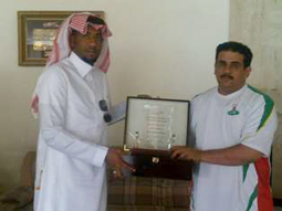 في خطوة لاقت استحسان الجميع بادر مكتب صدى الاحتراف لتعاقدات اللاعبين الأسبوع الماضية بتكريم إدارة نادي نجران بدرع تكريم نظير تعاملها الرائع والاحترافي مع المكتب، وتسلم الدرع المشرف العام على الفريق الأول بنادي نجران الأستاذ صالح قميش نيابة عن رئيس النادي الأستاذ مصلح آل مسلم، وسلم الدرع مفوض مكتب صدى الاحتراف الأستاذ عبدالله مجرشي الذي أكد على أن المكتب يهدف من هذه الخطوة إلى إيصال رسالة لجميع الأندية التي تعاملت مع المكتب بأنها تحظى باهتمام المكتب في حال التعامل الراقي والاحترافي مع كافة اللاعبين الذين تعاقد معهم عن طريق المكتب، مضيفاً بقوله إن المكتب لخدمة الجميع وحق لنا تكريم إدارة نادي نجران لما لمسناه منهم من تعامل احترافي بمعنى الكلمة وسنقوم بتكريم أندية أخرى في القريب العاجل بحول الله.