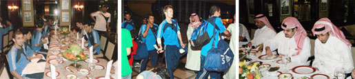 فور وصول الفريق توجهت البعثة إلى فندق (دوسيت) وبعد ذلك اتجهت البعثة إلى أبراج الإمارات حيث تناول الفريق وجبة العشاء على شرف رئيس النادي الذي دعاهم لتناول العشاء في مطعم (النافورة) بأبراج الإمارات.. وكانت أجواء الفريق في تلك الأثناء غاية في الروعة حيث تناول اللاعبون وجبة العشاء وسط أجواء جميلة تبادل خلالها الحاضرون الأحاديث.