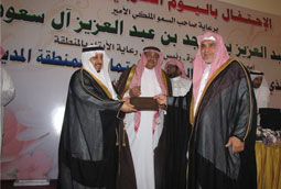 وقد أقيم حفل خطابي بهذه المناسبة بدئ بتلاوة آيات من القرآن الكريم، ثم ألقى مدير عام فرع وزارة الشؤون الاجتماعية بمنطقة المدينة المنورة عبدالجليل زارع كلمة قدم فيها الشكر والتقدير لسمو أمير منطقة المدينة المنورة على ما يقدمه من دعم للمبادرات الخيرية والإنجازات المباركة.