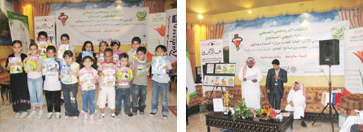 ومن جانبه أشار أشرف عبد الله رسام الكاريكاتير مشرف العلاقات العامة بالإدارة - منظم عام اللقاء أن الحضور حرصوا على التفاعل والمشاركة في فقرات برنامج اللقاء الرياضي الصحي الترفيهي الذي تضمن عدة فعاليات هي (بطولة في كرة القدم للكبار والصغار وأخرى في تنس الطاولة وفي كرة البيبي فوت على كأس الإدارة بين الفرق المتنافسة، محاضرة رياضية صحية بعنوان (أهمية الرياضة والغذاء في حياتنا) ألقاها أ. مشاري بن حمد الدخيل مساعد المشرف العام للإدارة العامة للتغذية، برنامج مسابقات ثقافية للكبار والصغار والعوائل، تكريم الموظف المثالي بالإدارة لعام 1430هـ د. بشرى البشير استشاري التغذية العلاجية، ومسابقة أجمل وأطعم طبق سلطة خضراء، مسابقات في التلوين للسيدات، فقرة ترفيهية، وحفل عشاء جماعي، وحفل تكريم ختامي للفائزين بالمسابقات برعاية المشرف العام)، وذلك بدعم بعض الجهات الوطنية المساهمة في إنجاح اللقاء بتقديم جوائز عينية للفائزين وهدايا دعائية للحضور.