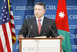 وجه العاهل الأردني الملك عبد الله الثاني في واشنطن أمس الجمعة تحذيراً شديد اللهجة إلى إسرائيل من ان عليها الاختيار بين الاندماج في المنطقة أو البقاء في عزلتها، مشيراً إلى أن المبادرة العربية للسلام التي أطلقت في بيروت عام 2002 والتي تحدد شروط إقامة دولة فلسطينية وتضمن لإسرائيل