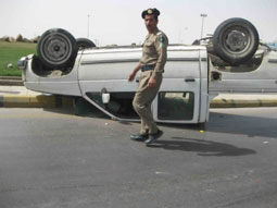 متابعة - عبد الله الشثيلي وقع حادث انقلاب سيارة من نوع داتسون غمارتين صباح أمس الأول على طريق الملك فهد، حيث انقلبت السيارة بسبب السرعة الزائدة وارتطمت بميدان الملك فهد، ونجا قائدها بأعجوبة، وقد باشر الحادث الجهات المختصة.