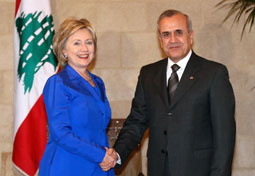 وأعربت كلينتون عن ارتياحها لتبادل السفراء بين لبنان وسوريا وقالت (نؤمن بان على لبنان ان تكون له علاقات جيدة مع جيرانه بما فيهم سوريا لكن لبنان بلد حر مستقل ذي سيادة).
