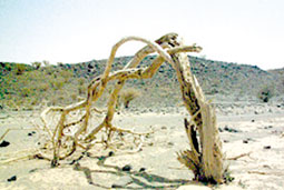 - هذه شجرة (سرح)، في حرة سوداء من غربي مركز الحفاير، على طريق الطائف المحاني، بدت وكأنها قد استسلمت لموجة الجفاف العارم الذي يضرب محافظة الطائف منذ سنوات عدة، فانحنت، حتى لامست بهامتها الذابلة تراب الأرض. - أخذت ظاهرة التصحر، تتسع في مراكز وضواحي الطائف، حتى تجردت جبالها من الغابات الخضر، وانحسر بساطها الأخضر، أمام يباس كثير من أشجار العرعر والسدر والسلم والسرح والسمر والغضا والطلح، والشث، وجفت مياه الآبار، واختفت مزارع الفواكه والخضار، وتحولت قراها الألفين، إلى الشرب من مياه البحر.
