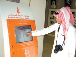 وأضاف أن جهاز السياحة بالمنطقة عمل على تركيب وتفعيل جهازين إلكترونيين للمعلومات السياحية في مطار نجران ومتحف نجران للآثار والتراث الواقع في مدينة الأخدود الأثرية، وقال إن الجهازين يقدمان كما هائلا من المعلومات السياحية والكثير من الإرشادات عن مواقع الخدمات وأبرز المواقع السياحية والتراثية والأثرية والحضارية بمناطق المملكة، كما يقدم الجهازان معلومات عن أبرز الفنادق والمطاعم وبقية ما يحتاجه السائح أثناء زيارته لمختلف المناطق بالإضافة إلى خرائط توضيحية وقائمة بأبرز الفعاليات والمهرجانات التي تشرف عليها السياحة والبوم صور متكامل عن أبرز المواقع السياحية في المملكة باللغتين العربية والانجليزية.
