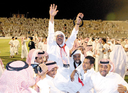 حملت جماهير الرائد عضو شرفها الداعم فهد المطوع بعد نهاية المباراة ووصفته ب(المنقذ) عرفانا منها بالدور الكبير الذي بذله تجاه الفريق من دعم مادي ضخم ووقوفه بجانب الفريق باستمرار؛ حيث ظل متفائلا حتى والرائد يمر بمراحل صعبة وحرجة، وكان طموحه يتعدى البقاء للمنافسة على مراكز الوسط غير أن الظروف لم تأت كما يريد.. المطوع بارك للجميع هذا البقاء، وأكد أنه لن يتوانى في خدمة عشقه الرائد، وأشار إلى أن الموسم القادم سيكون مختلفا، كاشفا عن أبرز المخططات؛ حيث سيقام معسكر خارجي بأوروبا، وسيتم التعاقد مع طاقم تدريبي وطبي عال، إضافة إلى جلب لاعبين أجانب ومحليين على طراز نادر.