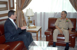 استقبل معالي رئيس هيئة الأركان العامة الفريق الأول الركن صالح بن علي المحيا في مكتبه بالوزارة أمس كبير الضباط العسكريين البريطانيين في العراق الفريق كريس براون. وقد جرى خلال اللقاء تبادل الأحاديث الودية ومناقشة عدد من المواضيع ذات الاهتمام المشترك.