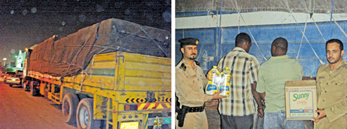 تحمل كل شاحنة 1920 كرتوناً تقدر قيمة الحمولة الواحدة بنصف مليون ريال.