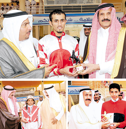 قدم الأستاذ خالد بن حمد المالك رئيس تحرير صحيفة الجزيرة درع الصحيفة للخيال فهد المزيني الفائز بالمركز الأول في شوط (الجزيرة) ودرع آخر لأصغر خيال وهو الشبل عبدالله الحماد.