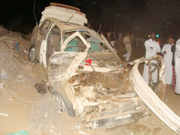 توفي طالبان وأصيب آخر بإصابات مختلفة في حادث تصادم مروع على الطريق الدولي جنوب محافظة أبي عريش بإصابات مختلفة. وكان ثلاثة طلاب يستقلون سيارة متجهين إلى مدرستهم الثانوية بزبارة رشيد واصطدموا بسيارة أخرى مما أدى إلى وفاة اثنين وإصابة آخر.