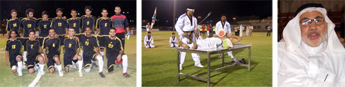 نيابة عن معالي الأستاذ الدكتور يوسف بن محمد الجندان مدير جامعة الملك فيصل رعى سعادة الأستاذ الدكتور عبد العزيز بن عبد المحسن الملحم وكيل الجامعة للدراسات العليا والبحث العلمي وبحضور سعادة الأستاذ الدكتور عبد الرحمن بن إبراهيم المعقل وكيل الجامعة للشؤون الأكاديمية وسعادة الدكتور محمد بن رفدان الهجهوج عميد شؤون الطلاب وسعادة الدكتور شاكر بن بدر الصويغ وكيل عمادة شؤون الطلاب وعدد من المسؤولين والرياضيين بالمنطقة افتتحت مساء السبت الماضي بطولة الجامعة المفتوحة لكرة القدم.. وانطلق حفل الافتتاح بدخول الفرق المشاركة للملعب الرئيس لكرة القدم.. تلاها تلاوة عطرة لآيات الله البينات تلاها الطالب محمد بالطيور.. ثم ألقى سعادة عميد شؤون الطلاب الدكتور محمد بن رفدان الهجهوج كلمة رحب من خلالها براعي الحفل والحضور وتمنى أن تظهر هذه البطولة بالروح الرياضية العالية بين المشاركين فيها وتبرز الفرق الرياضية إمكانياتها الفنية والمهارية من أجل الإثارة والندية المطلوبة.. معرباً في الوقت نفسه بأن تنظيم هذه البطولة يأتي ليعبر عن حرص الجامعة ممثلة في عمادة شؤون الطلاب على تنمية أواصر التعاون بين الجامعة والمجتمع الخارجي من خلال مشاركة العديد من الجهات الخارجية في هذه البطولة.. متمنياً في ختام كلمته لجميع الفرق الرياضية المشاركة بالتوفيق.. ثم ألقى راعي الحفل سعادة الأستاذ الدكتور عبد العزيز بن عبد المحسن الملحم كلمة نقل من خلالها تحيات معالي مدير الجامعة الأستاذ الدكتور يوسف بن محمد الجندان للحضور وتمنياته للفرق المشاركة في البطولة بالتوفيق وأن يكون التنافس الرياضي الشريف شعارهم طوال مجرياتها وأن يستمتع الحضور لفعاليات هذه البطولة بمستوى كروي ينم عن مستوى الفرق المشاركة الجيد وما وصلت إليه الرياضة من تطور وأن يوفق المنظمون في تهيئة الأجواء الجيدة من أجل أن تُظهر الفرق المشاركة إمكانياتها الفنية والحماسية بما يثري البطولة ونجاحها. بعد ذلك قدَّم فريق السيف للتايكوندو التابع لنادي الصواب بالعمران بقيادة مدربه حسن بن عبد الله الناصر وبشرح من مساعده أحمد حجي الأحمد ومشاركة رائعة من لاعبي الفريق عدداً من العروض التي أذهلت الحضور وصفقوا لها كثيراً واشتملت تلك العروض على الآتي: