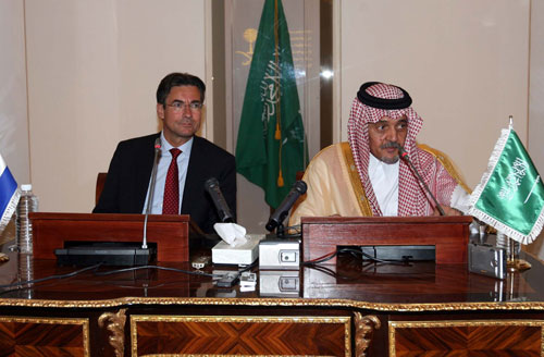 بين صاحب السمو الملكي الأمير سعود الفيصل وزير الخارجية أن المملكة العربية السعودية تعكف حاليا على تنفيذ برامج تنموية طموحة في الداخل توظف فيها معظم احتياطياتها مبيناً أن هذه البرامج حظيت باهتمام قمة العشرين لأثرها الإيجابي المتوقع في تحفيز الطب وجذب الشركات والمؤسسات العالمية للإسهام في التنمية القائمة. وقال سموه في مستهل مؤتمر صحفي مشترك عقده أمس بالرياض مع وزير خارجية هولندا ماكسيم فيرهاخن الذي يزور المملكة حالياً: (نأمل أن تتيح هذه الفرصة زيادة عدد المشاريع السعودية الهولندية المشتركة التي تبلغ حالياً (73) شركة تعمل في قطاعات الاستثمار والبناء والتشييد والنقل والمواصلات والتصنيع وغيرها من المجالات). وأكد سموه أن من أهم مجالات التعاون بين المملكة وهولندا هي مكافحة الإرهاب منذ مشاركة هولندا في المؤتمر الدولي لمكافحة الإرهاب الذي استضافته الرياض عام 2005 م مؤكدا أهمية اقتران الجهود الأمنية في المكافحة مع العمل على اقتلاع هذه الظاهرة العالمية من جذورها بما يستدعيه الأمر من سياسيات تتمثل في مكافحة مصادر تمويل الإرهاب ومحاربة فكرة التعصب والتطرف المحرض عليه بما في ذلك أفكار الكراهية والإقصاء والعنصرية ونزعة ازدراء الشعب والثقافات والديانات.