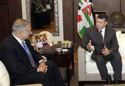 طالب العاهل الأردني الملك عبدالله الثاني الخميس رئيس الوزراء الإسرائيلي بنيامين نتنياهو في عمان بأن تعلن حكومته (فوراً) التزامها بحل الدولتين، على ما أفاد بيان صادر عن الديوان الملكي الأردني. ووفقاً للبيان، طالب العاهل الأردني نتنياهو الذي التقاه في عمان بأن تعلن الحكومة