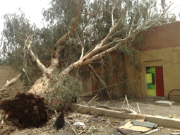 أنقذ الله مجموعة من العمال الذين سقطت شجرة ضخمة على منزلهم من جراء العواصف والأمطار التي شهدتها ظلم يومي الثلاثاء والأربعاء الماضيين، حيث تحصن العمال داخل مقر السكن وأفجعهم خلال هبوب العاصفة صوت دوي اهتزت معه جدران المنزل. يقول أحد العمالة ل(الجزيرة) خرجنا مسرعين بعد صوت الدوي لنفاجأ بسقوط الشجرة التي كانت داخل السور على جدران المنزل الذي تعرّض لبعض التصدعات من جراء سقوط الشجرة الضخمة.