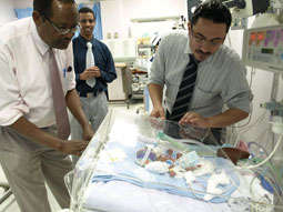 ضمن برامج التطوير الطبي المستمر لبرنامج الخدمات الصحية بالهيئة الملكية بالجبيل استضاف البرنامج الدكتور سامح أبو زيد استشاري الأطفال حديثي الولادة في مدينة الملك فهد الطبية بالرياض ولمدة خمسة أيام، وذلك للوقوف على الوضع الحالي لقسم العناية المركزة للأطفال حديثي الولادة ولتطوير مهارات القوى العاملة من أطباء وتمريض عن طريق البرامج التدريبية المخطط تنفيذها خلال فترة الزيارة, حيث قام د. سامح أبو زيد بعمل جولات يومية على الأطفال في الحضانات مع الفريق المعالج بغرض تكثيف الرعاية على الأطفال وتدريب الطاقم الطبي بوحدة العناية المركزة للأطفال حديثي الولادة (الخدج)، كذلك تم عقد دورة تدريبية عن الإنعاش القلبي التنفسي للأطفال الخدج على فترتين, وشهدت هذه الدورة إقبالاً متميزاً حيث حضرها 164 متدرباً.
