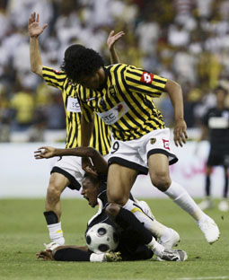 - ظل مدرب الاتحاد كالديرون واقفاً طوال مجريات الشوط الأول، فيما كان مدرب الشباب هيكتور أكثر هدوءً خاصة وأن فريقه كان يقدم أجمل عروضه الكروية على الاطلاق هذا الموسم.