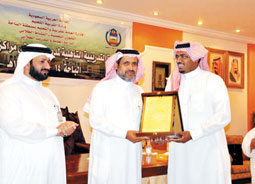 نيابة عن مديري ومنسقي مراكز التدريب بمناطق ومحافظات المملكة العربية السعودية سلم مشرف البرامج العامة والتدريب الأستاذ فهد بن عبد الله الغوينم درعاً تذكارية للأستاذ محمد مسفر الزهراني مساعد المدير العام للشؤون المدرسية والذي رعى اختتام الدورة التأهيلية لمشرفي ومنسقي مراكز التدريب والمقامة بمنطقة الباحة خلال الفترة من (14 - 18 - 5 - 1430 هـ). وذلك تقديراً من المتدربين للجهود المميزة من تعليم الباحة خلال استضافة هذه الدورة.