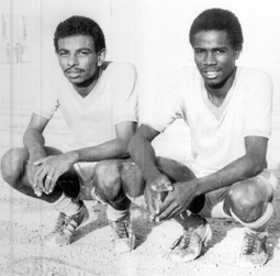 صورة قديمة تضم نجمي الشباب في التسعينيات الهجرية من القرن الفائت وهما المدافع الدولي الكبير (إبراهيم تحسين) الذي كان يتميز بسماته القيادية البارزة وقدراته الدفاعية البارعة التي منحته لقب القائد الأبرز في تلك الحقبة الفارطة، وكان من ضمن الجيل الذين مثلوا الأخضر في دورة الخليج الخامسة من العراق عام 78-1979 وكان من نجومها الكبار.. ويظهر في الصورة بجانبه المهاجم الدولي السابق خالد سرور الملقب ب(الغزال الأسمر) صاحب المشاركات الأربع في تاريخ دورات الخليج وأشهر مهاجمي تلك الحقبة الفارطة وأكثرهم تألقاً مع الفرقة الشبابية، حيث شكل مع رفيق دربه محمد النجدي المعروف بلقب (الصاروخ) ثنائي خطير كان يصعب إيقافه. هذه الصورة القديمة التقطت عام 1390-91 في ملعب الصائغ بالرياض.