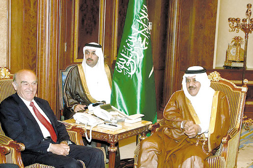 بحث صاحب السمو الملكي الأمير نايف بن عبدالعزيز النائب الثاني لرئيس مجلس الوزراء وزير الداخلية وفخامة الرئيس السويسري عضو المجلس الفدرالي وزير المالية المستشار هانز رودلف ميرتس القضايا الإقليمية والدولية ذات الاهتمام المشترك. كما تناول سموه خلال استقباله الرئيس السويسري مساء