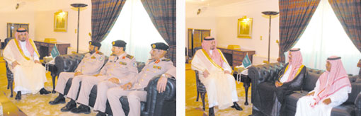إلى ذلك التقى سمو أمير منطقة نجران في مكتب سموه بالأمارة قائد حرس الحدود بمنطقة نجران اللواء - محمد بن عبدالرحمن الزهراني وقادة قطاعات حرس الحدود بالمنطقة ومدراء إدارات القيادة وقدم الجميع التهاني لسموه الكريم بمناسبة تعيينه أميراً لمنطقة نجران متمنين لسموه التوفيق والسداد لخدمة المنطقة وتحقيق تطلعات القيادة لخدمة الوطن وشكرهم سموه على مشاعرهم وما عبروا عنه سائلاً الله التوفيق لخدمة المنطقة والعمل على تحقيق تطلعات القيادة الرشيدة وقد نوه سمو أمير المنطقة بالدور الكبير الذي يبذله رجال حرس الحدود في التصدي للكثير من أعمال التهريب والتسلل التي تتم عبر المناطق الحدودية مبيناً أن الجهود التي تبذل هي محل تقدير صاحب السمو الملكي النائب الثاني وزير الداخلية وسمو نائبة وسمو مساعده للشئون الأمنية وسموه الكريم.