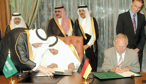 وقع صاحب السمو الملكي الأمير نايف بن عبدالعزيز النائب الثاني لرئيس مجلس الوزراء وزير الداخلية، ومعالي وزير الداخلية في جمهورية ألمانيا الاتحادية الدكتور ولفقانق شويبلي خلال اجتماعهما في مقر وزارة الداخلية مساء أمس على مشروع اتفاقية بين حكومة المملكة وحكومة ألمانيا الاتحادية تتعلق بالتعاون في المجال الأمني، وجرى خلال الاجتماع بحث القضايا الأمنية ذات الاهتمام المشترك والتعاون الوثيق وبخاصة في المسائل الأمنية التي تهم البلدين الصديقين.