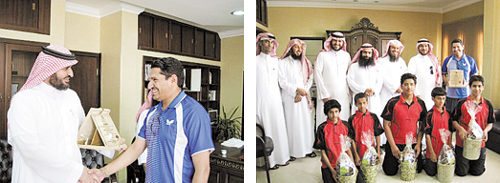 وفي نهاية الزيارة قدم مساعد مدير التربية والتعليم مكافأة تذكارية لأبطال المملكة متمنياً لهم دوام التوفيق والنجاح وتحقيق الإنجازات.