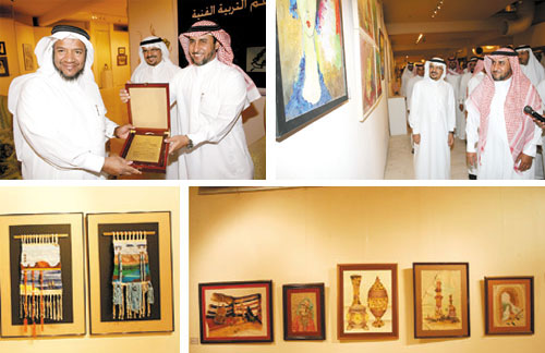 نيابة عن معالي مدير جامعة الملك سعود عبدالله بن عبدالرحمن العثمان افتتح الدكتور مساعد المسيند وكيل الجامعة للمشاريع المعرض الواحد والثلاثون لطلبة وطالبات قسم التربية الفنية بجامعة الملك سعود بمركز الأمير فيصل بن فهد للفنون بمعهد العاصمة النموذجي، حضر الافتتاح الدكتور