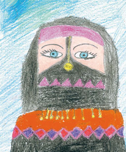 - صباح الخير يا سيدي الغول - وين كنتوا؟ - في البستان - شو أكلتو؟ - خوخ ورمان رسم: سونيا رامي أبو سمرة العمر: 12 سنة وجه من فلسطين