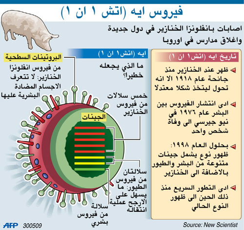 إلى ذلك سجلت إصابات جديدة بإنفلونزا الخنازير في دول جديدة وخصوصاً في أوروبا حيث دفع ذلك السلطات إلى إغلاق مدارس، بينما ارتفع عدد الوفيات بالمرض في المكسيك حيث رصد المرض للمرة الأولى.