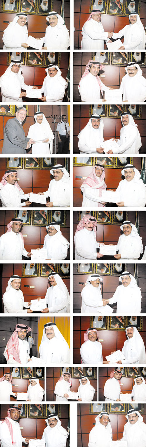 وقام كلٌ من رئيس التحرير والمدير العام والمشرف على الكرسي بتسليم الزملاء شهاداتهم بهذه المناسبة، ثم التقطت الصور التذكارية، ودعي الجميع لحفل الشاي المقام بهذه المناسبة.