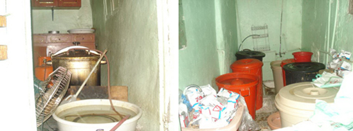 وتم التمكن من تقييده رغم مقاومته، ومن ثمَ تفتيش الموقع والذي احتوى على غرفتين تضمنت مجموعة من البراميل الجاهزة بعد تخميرها وتقطيرها من خلال قدور الضغط بخلاف العبوات وبكميات كبيرة كانت جاهزة للترويج والبيع والتي عُثر عليها بداخل كراتين مُعبأة منها كانت تنتظر المُتعاطين.