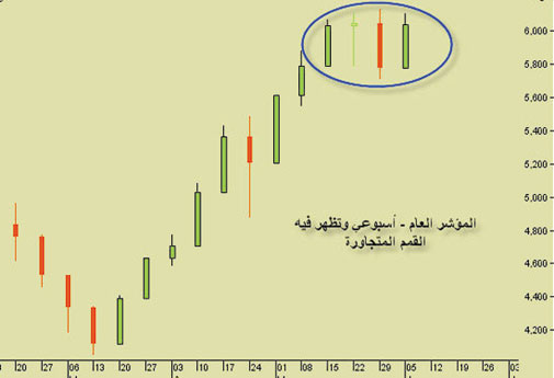 سبق وأن أشرنا الأسبوع الماضي إلى أن هناك عدة قمم متناظرة ومتجاورة تكونت بالمؤشر خلال الأسابيع الماضية وهي على المستوى الأسبوعي كالتالي (6078 القمة الأولى و6115 القمة الثانية و6139 القمة الثالثة و6114 القمة الرابعة والتي تكونت الأسبوع الماضي).. وتناظر القمم يحتاج إلى قوة شرائية كبيرة حتى يتمكن المؤشر من تجاوزها والإغلاق فوقها لعدة أيام وإلا لتحولت إلى نمط سلبي انعكاسي كما حصل الأسبوع قبل الماضي حينما لم يستطع المؤشر الإغلاق فوقها.. وبهذا ننتظر خلال الأيام القادمة تفاعل القياديات كسابك والراجحي والاتصالات في أن تساهم في اختراق أعلى قمة تكونت وهي 6139 والإغلاق فوقها وإلا لتراجع المؤشر تحت مستوى 6000 ثانية ليعاود الارتداد بشراء أقوى من السابق.