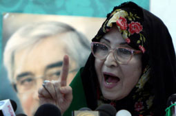 هددت زهرة راهنافارد زوجة مير حسين موسوي المرشح للرئاسة في إيران الرئيس الايراني محمود أحمدي نجاد برفع دعوى ضده لتصريحاته خلال حوار متلفز مع موسوي شكك من خلاله في مؤهلاتها الأكاديمية وشكك في صحة شهادة دكتوراه تحملها وفي النهاية حاول القول: إنه لا جدوى من تلقي النساء تعليماً عاليا. وطالبت راهنافارد في مؤتمر صحفي نظمته أمس لدعم زوجها المرشح مير حسين موسوي نجاد بالاعتذار الى الأمة الايرانية ولها شخصيا ولزوجها لأنه انتهك حياتها الشخصية. وأكدت أنه إذا لم يفعل فإنها سترفع الشكوى ضده خلال 24 ساعة. وأضافت أن نجاد يريد التخلص من خصمه عبر هذه الملاحظات. ورفضت راهنافارد في الوقت نفسه مقارنتها بالسيدة الأولى للولايات المتحدة الأمريكية ميشيل أوباما. وقالت: أنا لست ميشيل أوباما ولكنني أحترم كل الناشطين في مجال حقوق المرأة في أي مكان في العالم. وتعهدت بلعب دور مؤثر في تحسين حقوق المرأة في الجمهورية الإسلامية.