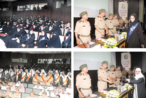 عقب ذلك ألقى مدير الشؤون التعليمية العميد الطبيب حمود الشهراني كلمة استعرض فيها الإنجازات التي حققتها الخدمات الطبية من خلال مراكز التدريب حيث يعتبر هذا المركز في مستشفى القوات المسلحة من أكبر مراكز التدريب وعدد الدورات التي تم عقدها حيث تم تخريج أكثر من 835 خريجاً يعملون في مستشفيات القوات المسلحة نالوا الدبلومات في شتى التخصصات. وعقب ذلك تم توزيع الشهادات والجوائز على الخريجين.