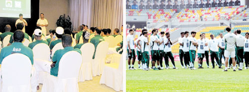 وشهد التدريبات مشاركة اللاعبين اسامه هوساوي ونايف القاضي بعد زوال الآلام التي كانا يعانيان منها ومنعتهما من المشاركة في تدريب الامس, فيما القى في الفترة المسائية المدرب بوسيرو محاضرة على اللاعبين تناولت شرحا لعدد من النقاط التي تهم المنتخب في مباراته القادمة امام كوريا الجنوبية والتي ينصب التركيز عليها حاليا من اجل تحقيق النتيجة الايجابية ومن خلال الفوز في هذه المباراة المهمة وقبل ملاقاة كوريا الشمالية في آخر مباريات التصفيات الآسيوية.
