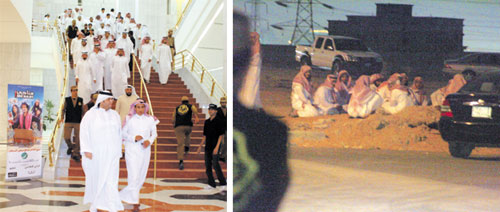 وخارج المركز وعند نقاط التفتيش الأمني تجمع أكثر من عشرين شخصاً دون أية مضايقة أمنية في تجمع أشبه ما يكون بالاعتصام حتى خروج الجماهير من مشاهدة الفيلم وقاموا بتوزيع أشرطة دينية عليهم وكتيبات دون تدخل رجال الأمن ومراقبتهم حتى لا يتم تصعيد الموقف.