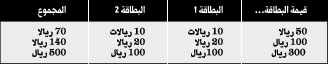 ويوضح الجدول التالي طريقة العرض المبتكر للبطاقتين المجانيتين حيث يستطيع العميل الاستفادة من البطاقة الأصلية وإهداء البطاقتين الإضافيتين لأحد أفراد العائلة أو الأصدقاء البطاقة المجانية الإضافية.