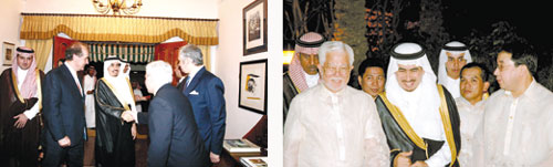 وكان في استقباله سفير الفلبين لدى المملكة انطونيو فيلامور وعدد من أعضاء السفارة. حضر الحفلين عدد من أعضاء السلك الدبلوماسي المعتمدين لدى المملكة.