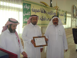 وقد بُدئ الحفل بالقرآن الكريم، ثم ألقى الطالب أسامة بن أحمد الخنيني قصيدة بهذه المناسبة كتبها الشاعر ناصر بن حمد المسلم، فكلمة المكرمين ألقاها نيابة عنهم المعلم سعد بن عبد الرحمن الجبر، بعد ذلك وجَّه مدير التربية والتعليم كلمة للمحتفى بهم من معلمين وإداريين أثنى فيها على ما قدموه من جهود وإسهامات مقدرة خلال مسيرة حياتهم العملية.. وفي ختام الحفل تم تسليم الشهادات والهدايا التذكارية للمحتفى بهم وهم: حسين بن مساعد العواد، سعد بن عبد الرحمن الجبر، محمد بن فوزان النصار، عبد المحسن بن عبد الله العضيب، جديع بن عبد الرحمن الجديع، محمد بن عبد الله المنيع، فهد بن عبد الرحمن الجبر، خالد بن عبد الرحمن المسعود، سليمان بن محمد الزويد، مقرن بن أحمد بن عبد الرحمن العبد المنعم، عبد العزيز بن محمد البدر (رحمه الله)، أحمد بن حمد المسلم، عبد الحميد بن عبد الكريم العامر، محمد بن عبد الرحمن الفهيد، موسى بن عبد الله العمار، عبد العزيز بن دخيل العبيد العصيمي.