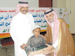 ثم قام مدير التربية والتعليم ومساعده للشئون التعليمية بتوزيع الشهادات والدروع والجوائز على الفائزين.