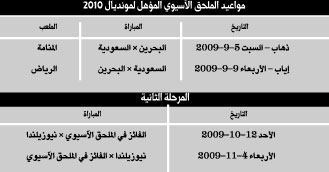 مواعيد الملحق الآسيوي المؤهل لمونديال 2010