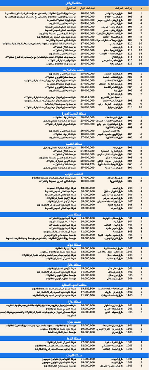 - ثانياً عقود صيانة الطرق بجميع مناطق المملكة، وهي: