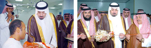 دشن صاحب السمو الملكي الأمير مشعل بن عبد الله بن عبد العزيز أمير منطقة نجران أمس مشروعات صحية تطويرية بمستشفى الملك خالد بنجران بتكلفة بلغت 50 مليون ريال. وكان في استقبال سموه لدى وصوله مقر المستشفى مدير عام الشؤون الصحية بمنطقة نجران الدكتور يحيى بن محمد آل شويل ومدير مستشفى الملك خالد بنجران الدكتور عبده بن حسن الزبيدي وعدد من المسؤولين في الشؤون الصحية بالمنطقة. وقام سمو أمير منطقة نجران فور وصوله بقص الشريط إيذانا بافتتاح المشروعات الصحية التطويرية بمستشفى الملك خالد، حيث قدم طفل وطفلة باقتين من الورود ترحيبا بسموه. ثم تجول سموه في أقسام الطوارئ واطلع على الأجهزة الطبية الحديثة واستمع إلى شرح مفصل من مدير مستشفى الملك خالد عن الخدمات الصحية المقدمة للمرضى.
