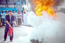 نفذت الهيئة الملكية بينبع ممثلة في إدارة الأمن الصناعي وبالتعاون مع إدارة المواصلات والمعدات أمس الأول تدريباً عملياً لقائدي حافلات الهيئة الملكية على الطرق السليمة والعملية لمكافحة الحرائق وإخمادها، وشملت الدورة التدريبية التي شارك فيها مختصون من إدارة الأمن الصناعي محاضرة تضمنت التعريف بالحرائق وأنواعها وطريقة مكافحة كل نوع منه.