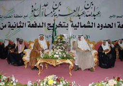 رعى صاحب السمو الأمير عبدالله بن عبدالعزيز بن مساعد آل سعود أمير منطقة الحدود الشمالية أمس الحفل الذي أقامته الجامعة بمناسبة تخريج الدفعة الثانية من طلاب الجامعة وذلك بقاعة الأمير عبدالعزيز بن مساعد للاحتفالات.