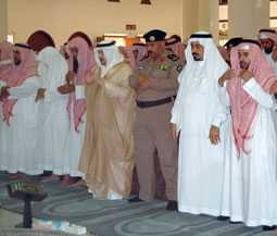 أدى صاحب السمو الملكي الأمير فيصل بن بندر بن عبد العزيز أمير منطقة القصيم ظهر أمس صلاة الجنازة على الشيخ عبد العزيز بن صالح الثويني وذلك في جامع الشيخ محمد بن عبد الوهاب بمدينة بريدة, وقد قام سموه بتقديم العزاء لأبناء الفقيد الدكتور محمد مدير الجمعية الخيرية ببريدة وإبراهيم الموظف في مكتب سموه وعلي وأحمد وصالح, سائلا المولى المغفرة والرحمة للفقيد وأن يلهم آله وذويه الصبر والسلوان.