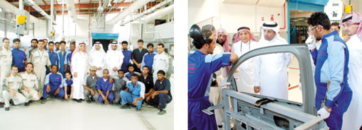 وكشف الغفيص عن إسناد تشغيل معاهد المؤسسة للقطاع الخاص، مؤكداً أن هذه المعاهد والمراكز التدريبية التي أنشئت وستنشأ لاحقاً ستتم بالتعاون مع القطاع الخاص. جاء ذلك خلال زيارة معاليه صباح يوم أمس لمركز عبداللطيف جميل للتدريب المهني بمحافظة جدة، واطلع خلالها على برامج المركز التي تشمل تخصصات ميكانيكا السيارات والسمكرة والدهان والتقى عددا من خريجي الكليات التقنية والمعاهد المهنية الصناعية الذين يعملون لدى مجموعة عبداللطيف جميل في مجال صيانة السيارات وأبدى إعجابه بما شاهده من مستوى في التدريب وأداء الشباب السعودي بمهام عملهم بدقة وانضباط.