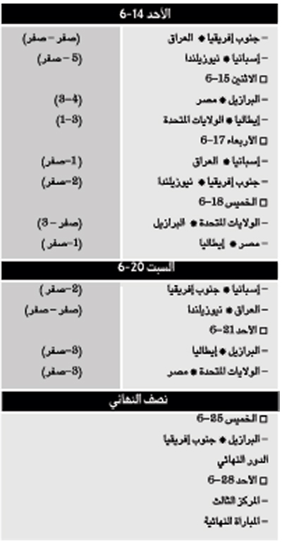 كأس القارات : مفكرة نتائج