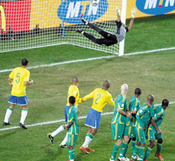وجد المنتخب البرازيلي صعوبة في اختراق الجدار الدفاعي المنظم لجنوب إفريقيا التي اعتمدت على الهجمات المرتدة السريعة وقدم المنتخب الإفريقي أفضل مباراة له في البطولة حتى الآن لأنه كان نداً عنيداً للمنتخب البرازيلي الذي يتفوق عليه فنياً وخبرة لا بل إنه تفوق عليه في بعض فترات المباراة.